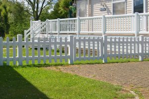 UVPC fencing and small gate supplied and fitted to create private area at a static caravan site.