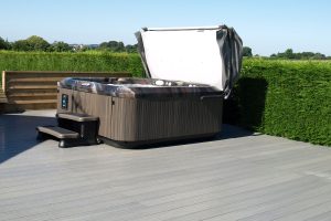 In Driftwood Grey UVPC, this decking was designed to withstand the addition weight of a hot tub.